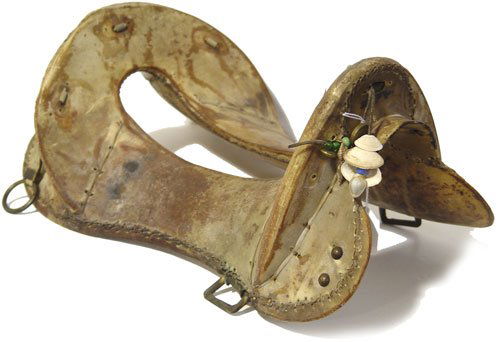Sioux Saddle - pre 1900Rawhide-covered Sioux saddle frame with aged leather strapping. Distinctive upward horns and strong structural form with visible signs of historical use.reference: native american, indian artifact, arSee Sold Price