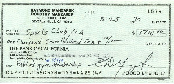 Warren Beaty signed bank check