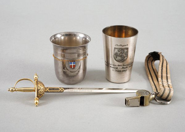 Raymond Kopa Memorabilia, Comprising: A Metal Beake