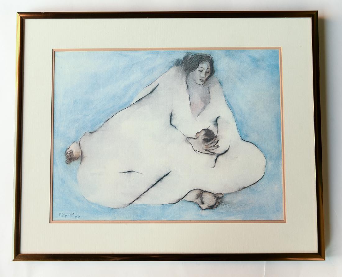 SoldR.C. Gorman Signed Print on Paper Mother and ChildGorman, R.C./Rudolph Carl (Native American/Navajo, 1931-2005) Mother Nursing, mid to late 20th century, inkjet print on paper, depicting a seated mother holding her infant, signed in pencil at lower rSee Sold Price