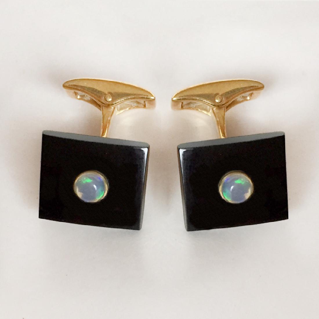 Rectangular Black Onyx Hand Made Cufflinks With Bezel