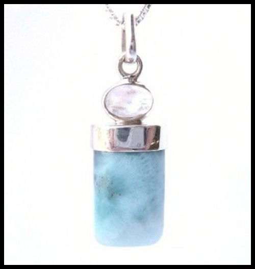 RECTANGULAR LARIMAR AND MOONSTONE PENDANT