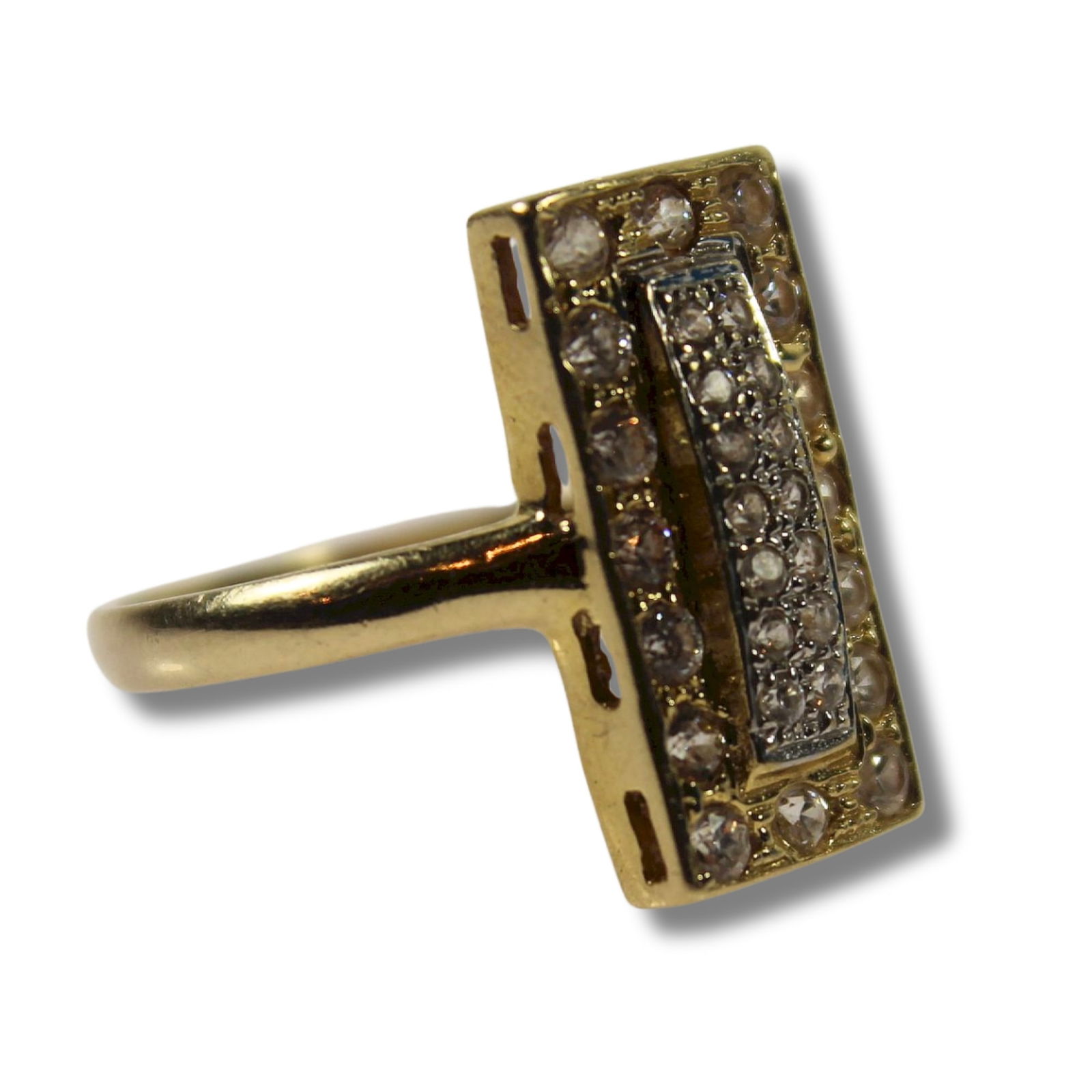 Rectangular-set White Sapphire Ring in 14ct Yellow Gold