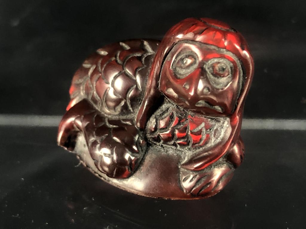 Red Amber Kappa Netsuke Signed
