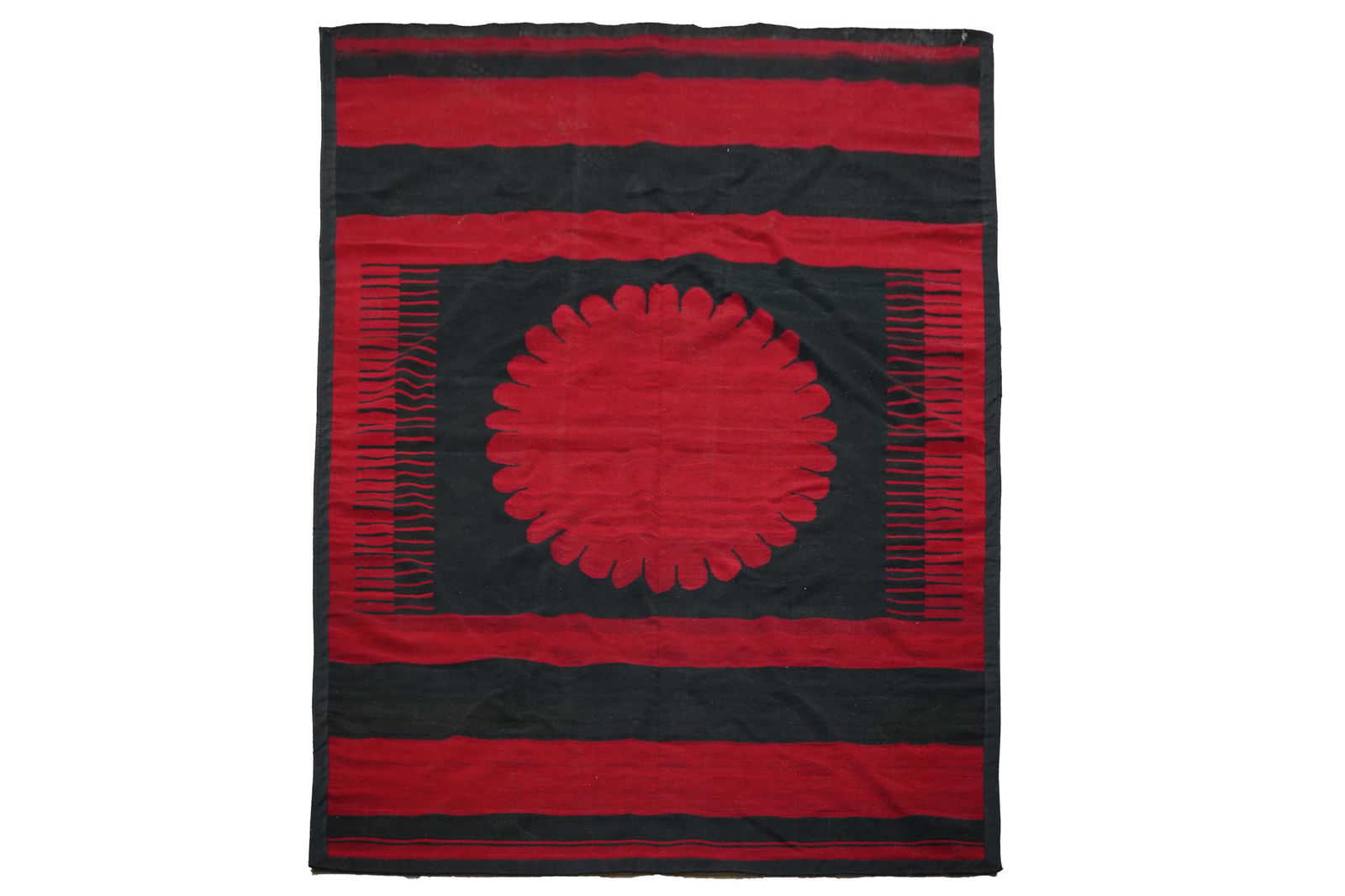 Vintage Turkish Kilim Geometric Wool Rug 4'9" x 11'1" Ruby Red