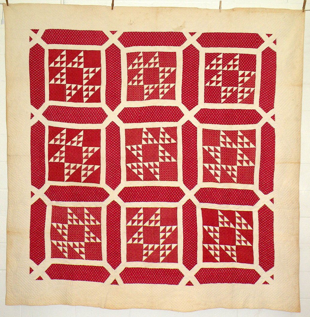 1840's Stars Quilt, Sawtooth BordersFeb 20, 20261870's Baskets Quilt TopFeb 19, 20261870's "Old Italian Block" Quilt TopFeb 20, 20261890's Red & White Wagon Wheel QuiltFeb 19, 20261890's Roman Stripe QuiltFeb 20, 2026Large 30's Nine Patch QuiltFeb 19, 2026Hand Stitched Multi Square Patterned Flour Sack QuiltMar 02, 2026RED/WHITE QUILT3 days LeftAMERICAN COTTON PIECEWORK QUILT.Feb 19, 2026Crown of Thorns Pieced Cotton Quilt, Early 20th C.Feb 24, 20261897 Names Quilt 16 geometrical block w/ names & dates 82" x 74"Feb 24, 2026AMERICAN APPLIQUE DELECTABLE MOUNTAINS QUILT.Feb 19, 2026AMERICAN COTTON DOUBLE IRISH CHAIN QUILT.Feb 19, 2026Hand Stitched Miniature Rose 9 Square Patch QuiltMar 02, 2026Pineapple pattern quilt, signed "B.S. Moller Nov. 23rd 1855" 72" x 86"Feb 24, 2026AMERICAN COTTON IRISH CHAIN QUILT.Feb 19, 2026