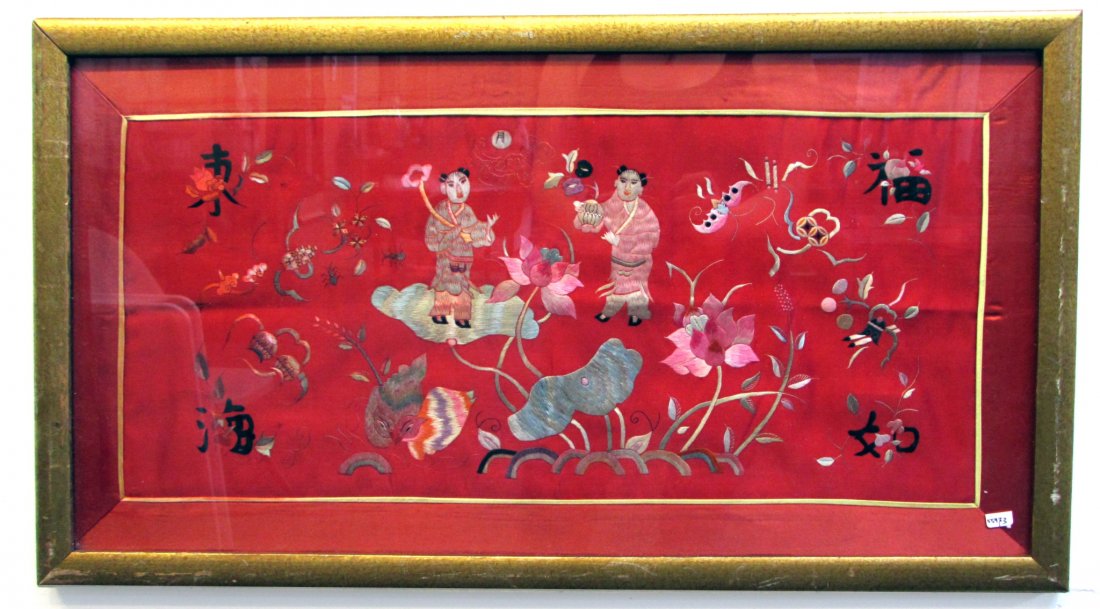 Chinese Figural Scene Embroidered Silk TextileFeb 26, 2026Guangdong embroidery of Prosperity Unfolds on wine-red background, Late Qing to Republic of China5 days LeftA piece of Su embroidery of the Qing Dynasty was enrolledMar 14, 2026FLORAL PICTURE BY HUANG BINHONG RED SILK WAX PAPER FRAMED SOLID WOODMar 01, 2026Qionglou Exquisite Embroidery6 hrs LeftChimu Embroidered Textile Section with BirdmenFeb 26, 2026Zhou Fang, Fine Silk Painting: Children at Play6 hrs LeftBeautiful LARGE Antique Framed Sampler 28 x 27.514 hrs LeftHorizontal Gold Thread Embroidered Magpies on the Plum Blossom Branches , Late Qing to RepublicanMar 04, 2026Femalle kimono, furisode Japan, early 20th century457 Lots AwayMade during the Qianlong reign of the Qing Dynasty! A rosewood hanging screen with a red background7 hrs LeftQing Dynasty Dragon Robe Fabric with Gold Thread EmbroideryFeb 28, 2026A silk book of Yu Zhiding's figure paintingFeb 27, 2026(Abundance Every Year) Brocade Painting6 hrs LeftAn Exquisite Kesi Flower and Bird Pattern OrnamentMar 13, 2026Vintage Estate Framed Chinese Tapestry Wall DecorFeb 26, 2026