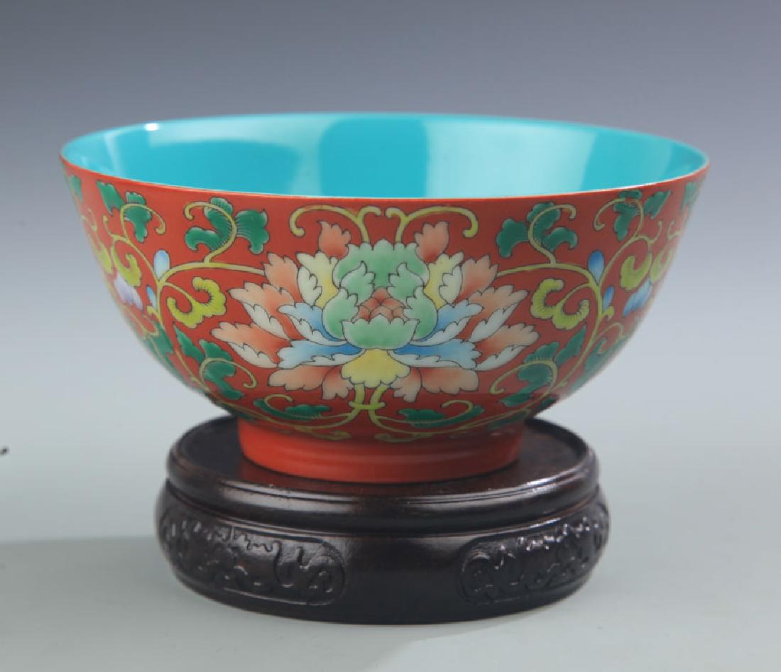 RED CORAL GLAZED FLOWER PATTERN BOWL