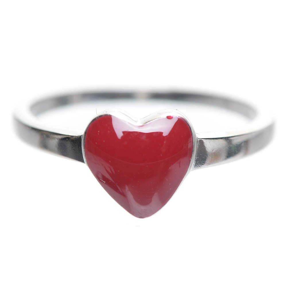 Red Enamel Heart Sterling Silver Ring Size 3