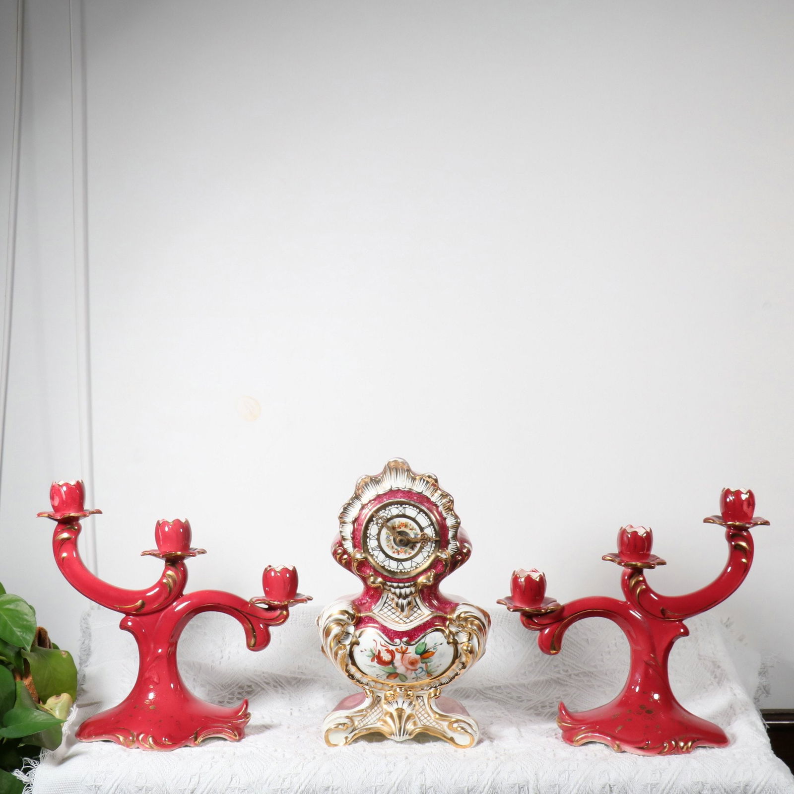 Red glaze clock three-piece set