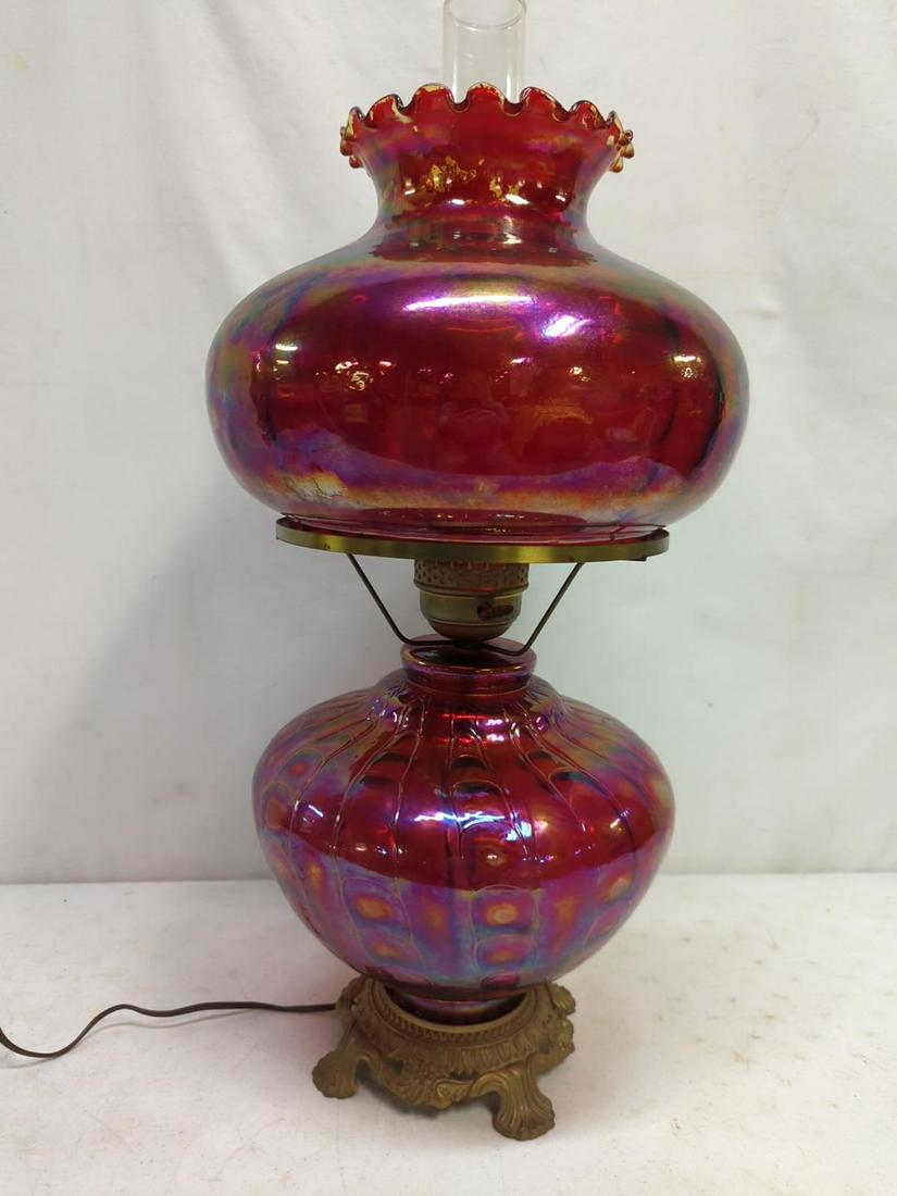 Red Irridescent Hurricane Lamp