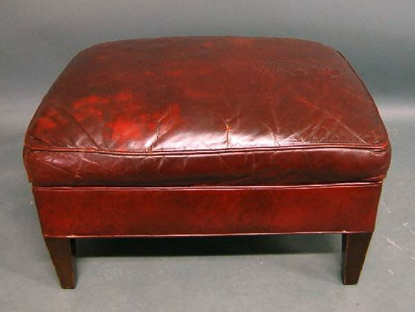 Red leather chair and footstool.
