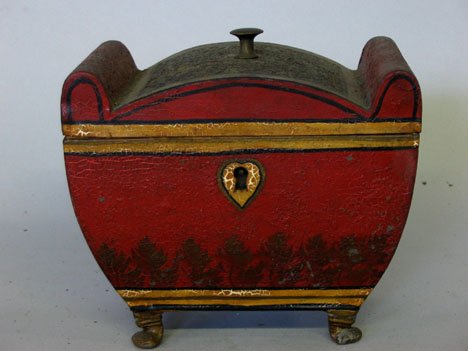 Red painted and stenciled tea caddy, 19th centur
