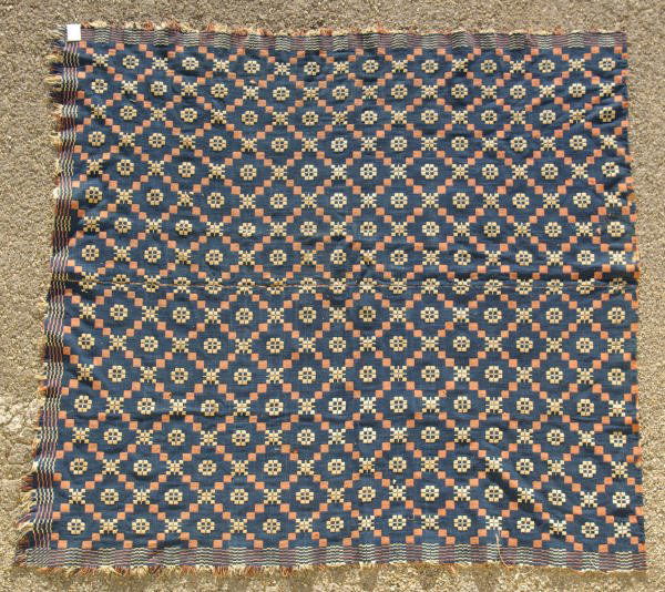 Early Loom Woven Jacquard Coverlet