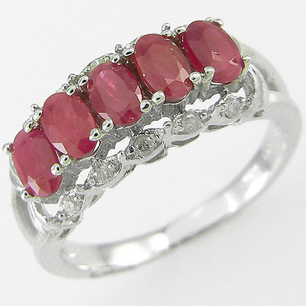 Gold Ruby 0.526Ct Diamond 1.05Ct 5-Row Ring 18K 750 White