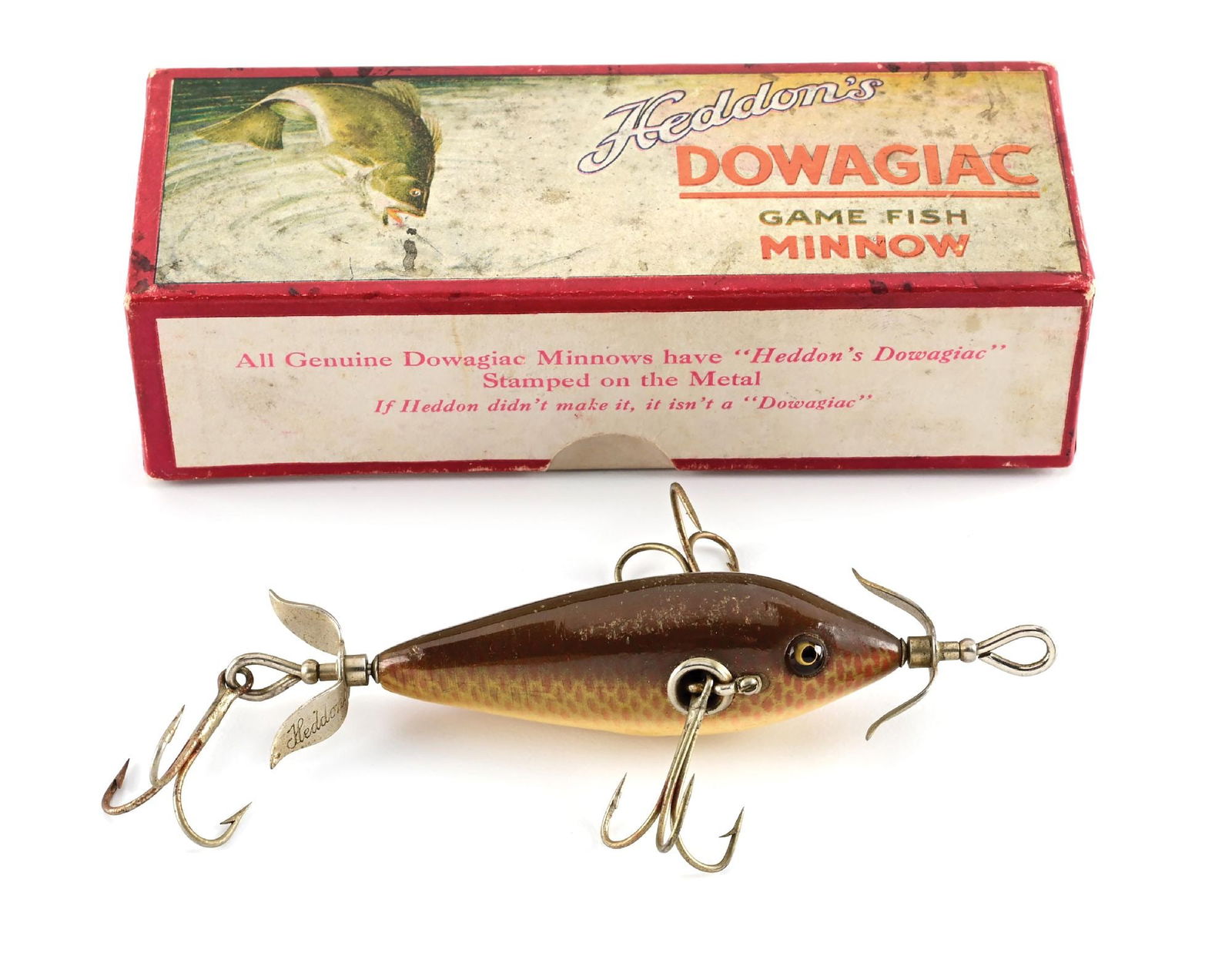 RED SCALE HEDDON MINNOW IN RED BORDER BOX