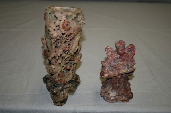 Lot of 3 Large Carved Chinese Soapstone Vases.