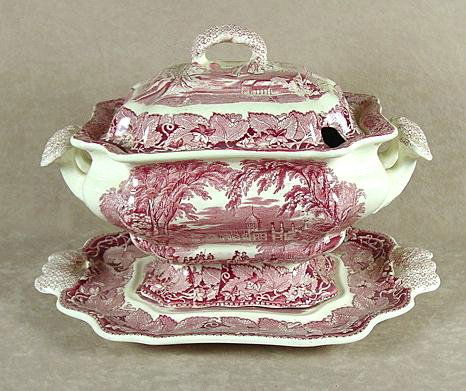 RED TRANSFER SOUP TUREEN & STAND