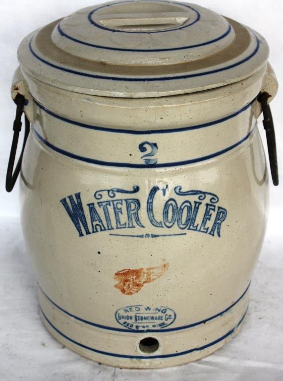2 Gallon Pennsylvania Crock Flower DesignFeb 25, 2026Kähler, Denmark, stoneware vase / flowerpot holder.Red Wing Advertising Butter PailFeb 25, 20263 Gallon Red Wing Salt Glaze Leaf DesignFeb 25, 2026Minnesota Stoneware 2 Gallon Drop TargetFeb 25, 2026Red Wing 2 Gallon (Bee Sting)Feb 25, 2026Antique Red Wing 3 Gallon Stoneware Water Cooler With LidFeb 28, 2026Red Wing Union Stoneware 6 Gallon Water Cooler, large wing, handwritten 6 on bottom interior, app...Red Wing 2 Gallon Water Cooler w/wire handles & spigot, small wing, RARE upside down RW Union Sto...Red Wing 4 Gallon Ice Water Cooler w/spigot & Union Stoneware Co. oval, Exc cond, H 13 x D 10.5 in.Red Wing Salt Glaze 4 Gallon Crock, stamped Red Wing Stoneware Company on back, hand-painted cobaltRed Wing 5 Gallon Leaf Crock, chip on one handle/hairline crack on factory glaze imperfection, o/...Red Wing Salt Glaze 5 Gallon Rib Cage w/Target, unmarked Red Wing, hand-painted number & decorationRed Wing Salt Glaze 3 Gallon Crock (unmarked) w/hand-painted cobalt blue number 3 & Lazy Eight Ta...Red Wing 4 Gallon Elephant Ear Crock w/Union Stoneware Co. oval, chips on outside bottom rim, o/allRed Wing Salt Glaze 6 Gallon Leaf Crock, unmarked Red Wing w/hand-painted cobalt blue Leaf & No. 6,