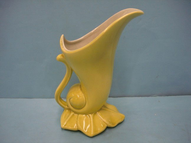 Red Wing Chartruese Glazed Pottery Cornicopia Vase