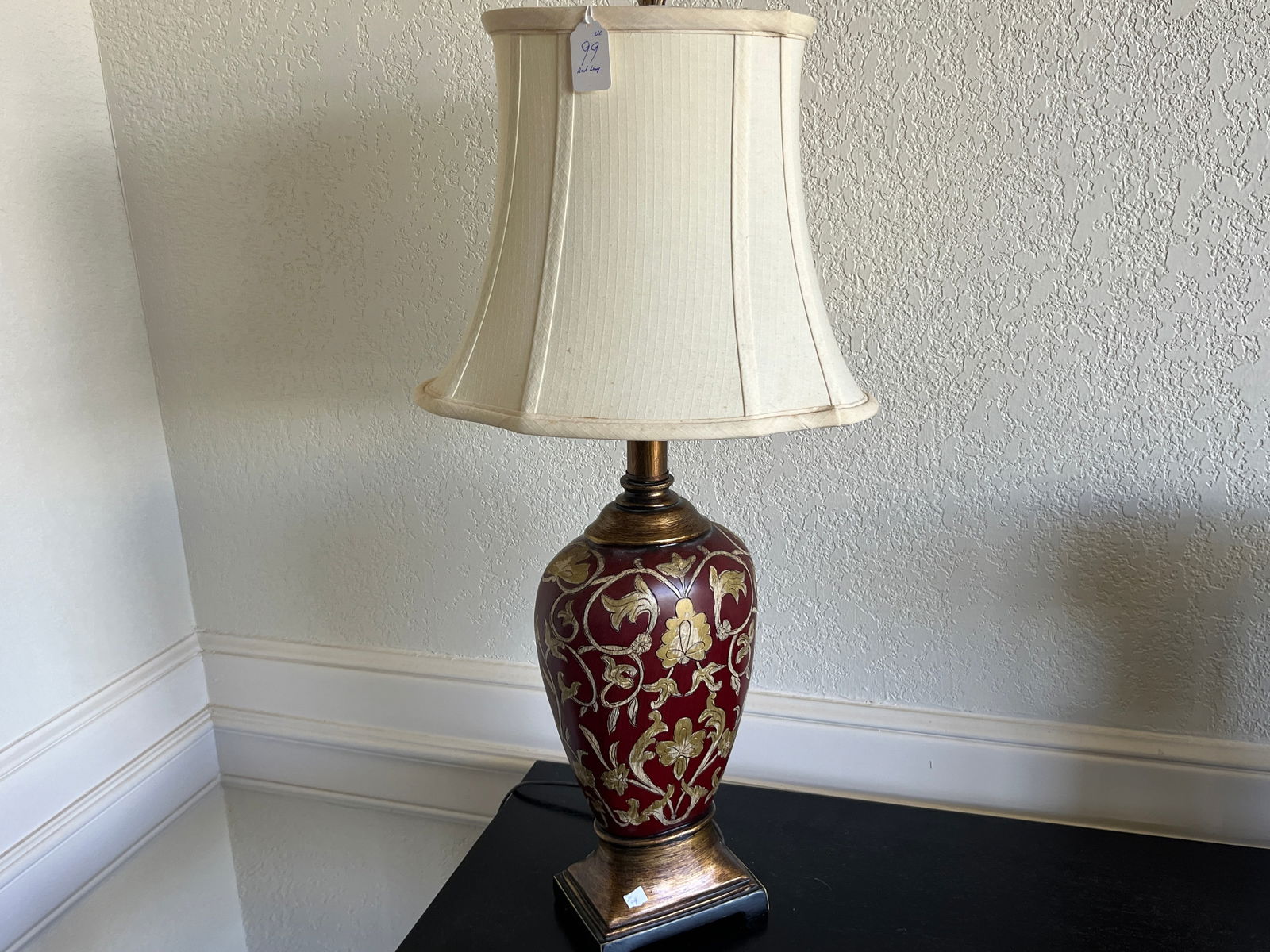 Brass Bouillotte Table Lamp, Red Tole Shade