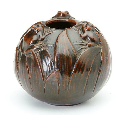 REDLANDS Rare spherical vessel embossed with three