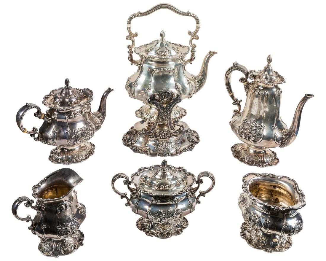 ENGLISH SILVER LUSTRE CERAMIC TEA AND COFFEE ARTICLES, LOT OF SIXMar 04, 2026Sterling Silver Estate Tablewares2 days LeftA FOUR-PIECE SILVER 'BAMBOO' TEA AND COFFEE SERVICE, MARK OF ZEE WO, SHANGHAI, CIRCA 1870-1925Mar 11, 20266 Piece Sterling Silver Tea and Coffee Set3 days LeftE.G. WEBSTER & SON SILVER-PLATED FIVE-PIECE COFFEE AND TEA SERVICEMar 04, 20266-Pc. Reed & Barton Repousse Tea SetMar 07, 2026Frank W. Smith "Georgian" sterling tea service.1 day LeftSix-Piece Gorham Sterling Tea & Coffee Service4 days LeftFour-Piece Durgin Sterling Tea & Coffee Service4 days LeftF.B. Rogers Five-Piece Sterling Silver .925 Tea SetSILVERPLATE TEA AND COFFEE SERVICE130 Lots AwayWilhelm BINDER. 6-piece tea and coffee set in Queen Anne style. 925, 835 and 800 silver.5 days LeftRepousse coin silver tea set with tray.1 day LeftDurgin sterling silver 5-piece tea set. Octagonal forms. Monogrammed. Includes: tea pot, coffee pot,6 days LeftA six piece German 800 standard silver tea and coffee service, Wilhelm Binder, Schwabisch Gmund3 days LeftANTIQUE VICTORIAN AESTHETIC GERMAN COIN SILVER TEA SET4 days Left