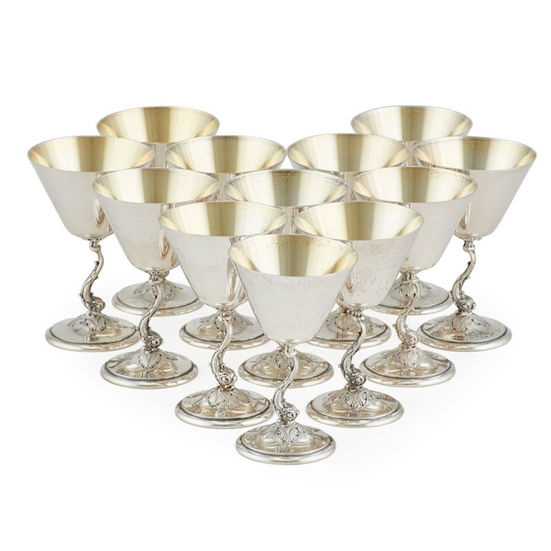 Set of six Gorham sterling silver wine / water goblets with gilt interior, 28.457 ozt. 6 1/2"H x 35 days Left1920s Vintage Gilt Rim Sherry Wine Stems- Set of 5Pair of Silver Stemmed Figural CupsFeb 28, 20266 International Wedgwood sterling water goblets.Feb 24, 2026A set of ten Newport sterling silver gobletsMar 03, 202612 STERLING CHAMPAGNE COUPS, 43.8 T.O.W.Mar 07, 2026A set of eight silver goblets Frank Roger Clark, London 1973A set of four Victorian sterling silver Cellini goblets, Daniel & Charles Houle, London, 1874Feb 25, 20268 Sterling Silver Fisher Punch Cups2 hrs LeftSet of Twelve Hamilton Weighted Sterling Footed Dessert Cups, 20th c., H.- 4 in., Dia.- 3 3/4 in.Feb 27, 2026Collection Chinese silver cups and trophies3 days Left(6pc) LA PAGLIA STERLING CORDIAL CUPS6 days Left(6) STERLING SILVER DESSERT BASES6 days Left12 Reed & Barton X155C sterling water goblets.Feb 24, 202616 STERLING WATER GOBLETS, 60 T.O.W.Mar 07, 2026Six Mexican Sterling Silver Repousse GobletsFeb 26, 2026