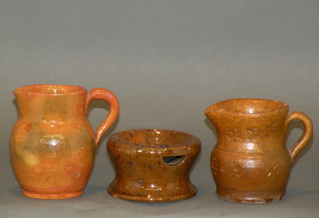 Lot of 3 antique small earthenware/redware items incl pitcher, 2 handled jar & mustard pot - 4 1/4",Flying Pig Auctions4.7(395)$25(1 bid)3 days Left