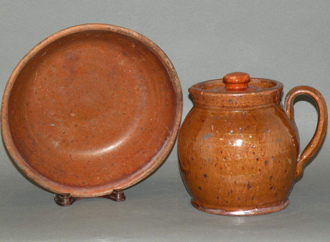 Lot of 2 antique redware items incl pitcher & bowl - 7" tall pitcher & 4 1/2" tall x 7" diamFlying Pig Auctions4.7(395)$40(2 bids)2 days Left