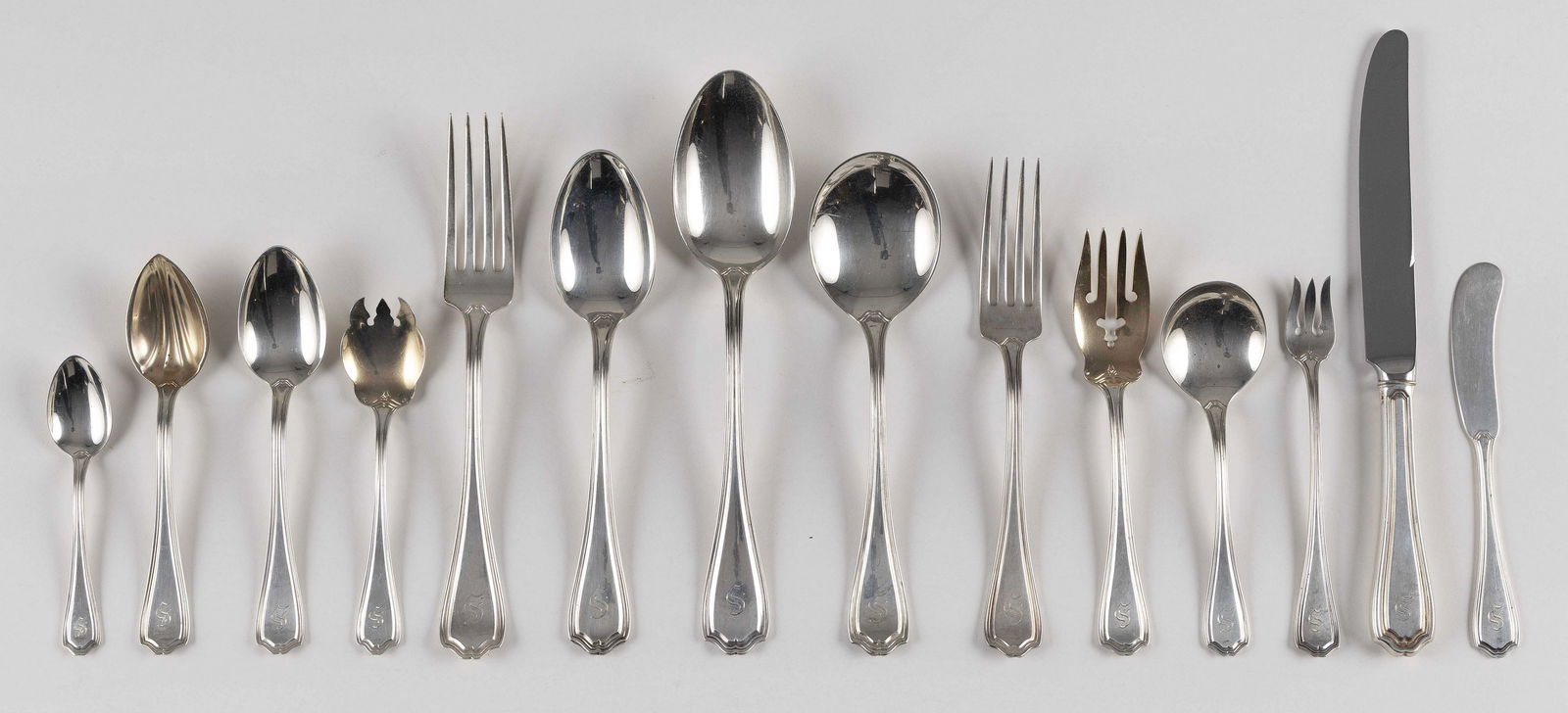 Sterling silver lot1 day LeftLot of Silver Flatware.19 hrs LeftSTERLING FLATWARE INC. 7 KNIVES, 4 DINNER FORKS, 4 T-SPOONS & 2 SALAD FORKS APPROX. 22.9 TROY OZ6 days LeftReed Barton Eighteenth Century Sterling Flatware, 60 PiecesMar 26, 2026Reed & Barton 1800 Stainless Steel Flatware Set for 12 - 60 Pieces13 hrs LeftGorham "Camellia" Sterling Silver Flatware Service for 10 With ExtrasMar 19, 2026Partial Bigelow Bros & Kennard Coin Silver Flatware ServiceReed and Barton "Dancing Flowers" Sterling Silver Flatware Partial Service for 18Mar 19, 2026Alvin Chateau Rose Sterling Silver Flatware ServiceMar 24, 2026Stieff "Corsage" Sterling Silver Flatware Service for 8Mar 19, 2026American Sterling Silver Sixty-Six Piece Flatware Service3 days LeftGroup of Sterling Silver Flatware PiecesMar 28, 2026An American Silver Flatware ServiceMar 17, 2026Rogers "Breton Rose" Sterling Silver Flatware Service for 6Mar 19, 2026Gorham "Rose Tiara" Sterling Flatware2 days LeftFifteen Piece Group of Antique Silverware, 19th c., App. French First Standard Wt.- 10.55 Troy oz.;Mar 27, 2026