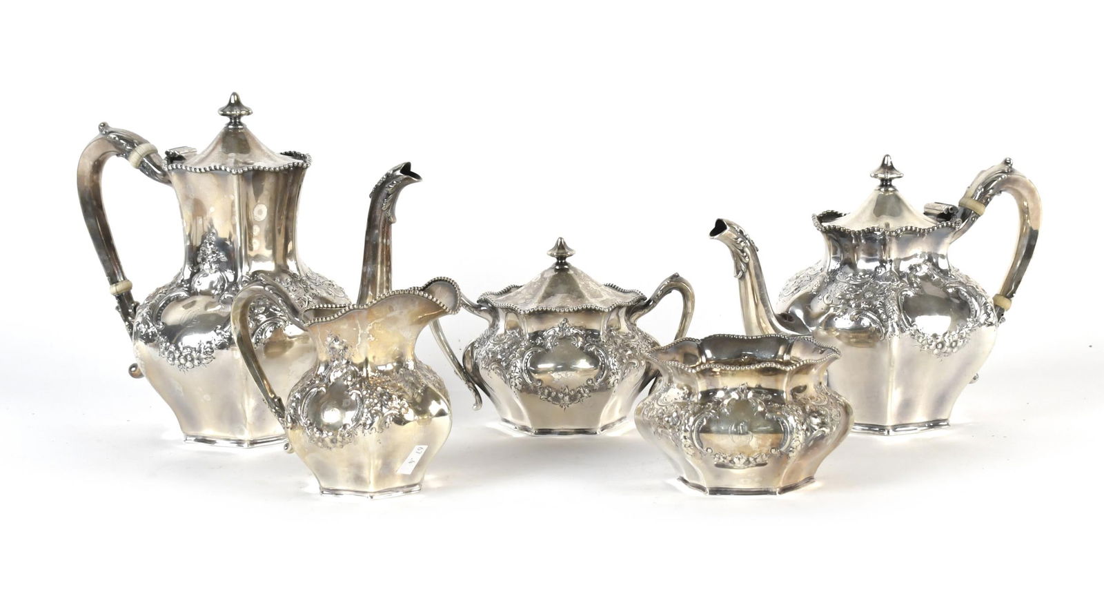 REED & BARTON STERLING SILVER TEA SET, 5 PCS.