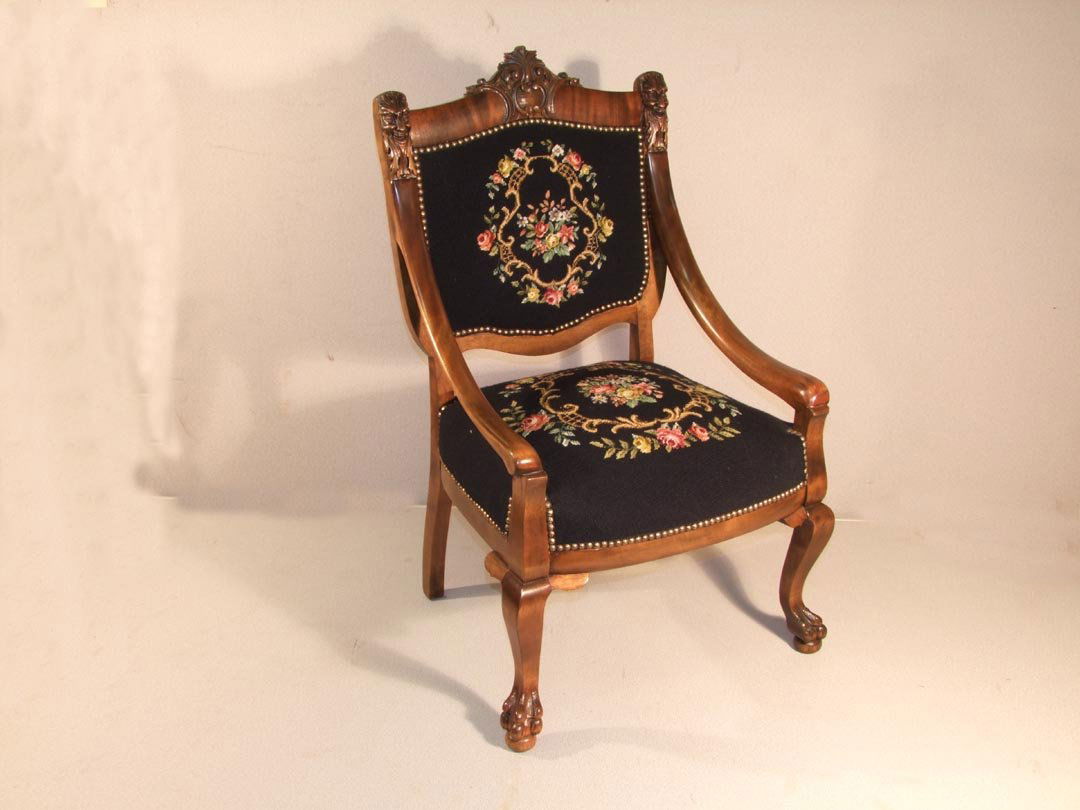 English Mahogany Hepplewhite Shield Back Chair c.1790Walnut Victorian Side Chair with Needlepoint Upholstery9 hrs LeftQueen Anne Mahogany Corner Chair, Needlepoint SeatMar 14, 2026Louis XVI Style Walnut Open Arm Chair, Needlepoint Upholstery 1900, H 34" W 24"Mar 19, 2026QUEEN ANNE/GEORGIAN STYLE MAHOGANY CORNER CHAIRMar 25, 2026Exquisite 1880s Mahogany Chippendale Library Chair with Carved Details2 days Left19th Century American Ladies Bustle Arm Chair8 hrs LeftAMERICAN QUEEN ANNE STYLE MAHOGANY CORNER CHAIR. 33.5"h. 19" seat. h.Mar 19, 2026George II Style Carved Mahogany Library ArmchairMar 15, 2026Highly Carved Mahogany King's ChairMar 16, 2026Handcrafted 18th Century Style Mahogany Side ChairMar 14, 2026Victorian Walnut High-Back Parlor Chair with Needlepoint Upholstery9 hrs LeftVictorian Walnut Arm Parlor Chair with Flame Stitch Upholstery9 hrs LeftMid 20th Century Chippendale Corner ChairPeriod George III Carved Mahogany Armchair9 hrs LeftEarly 20th Century Empire Scroll Chair in the Fashion of Muelller