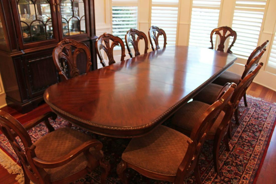 Century Dining Table & 8 Maitland Smith Chairs.6 days LeftMahogany Chippendale Dining Table with Chairs Ball Claw Feet Shell Carving SetMar 22, 2026Chippendale Style Mahogany Three Pedestal Dining Table, 2 Leaves 20th Cent., H 30" W 48" L 113.5"4 days LeftBurl mahogany with banding dining set ? orig finishMar 29, 2026Vintage Oak Dining Table with Cane-Back Chairs (Set)11 hrs LeftJohn Widdicomb Neoclassical Mahogany Dining Room TableMahogany Dining Table with Double Pedestal and Ball Claw Feet Model 2208Mar 22, 2026RENAISSANCE REVIVAL TABLE & 8 CHAIR SETApr 05, 2026Chippendale Style Mahogany Two Pedestal Dining Table, 2 Leaves 20th Cent., H 30" W 44" L 76"4 days LeftArt Deco Dining Table & Chairs Set2 days LeftGeorge III Inlaid Mahogany 2-Pedestal Dining TableMar 25, 2026Kindel Empire Design Mahogany Dining Table with 2 Leaves5 days LeftHIBRITEN DINING SETVintage solid cherry QA dining table with 3 10" leavesMar 29, 2026Georgian Style Banded Mahogany Dining TableMar 26, 2026Majestic Regency Italian Mahogany Double Pedestal Dining Table3 days Left