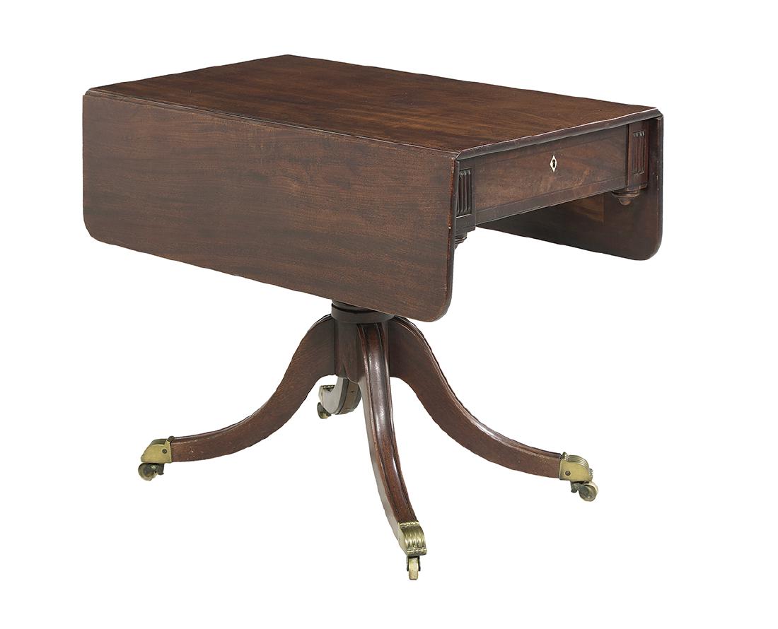 SoldA Regency Mahogany Drop-Leaf TableA Regency Mahogany Drop-Leaf Table Early 19th Century Height 28 1/2 x width (closed) 21 x depth 41 1/2 inches.See Sold Price