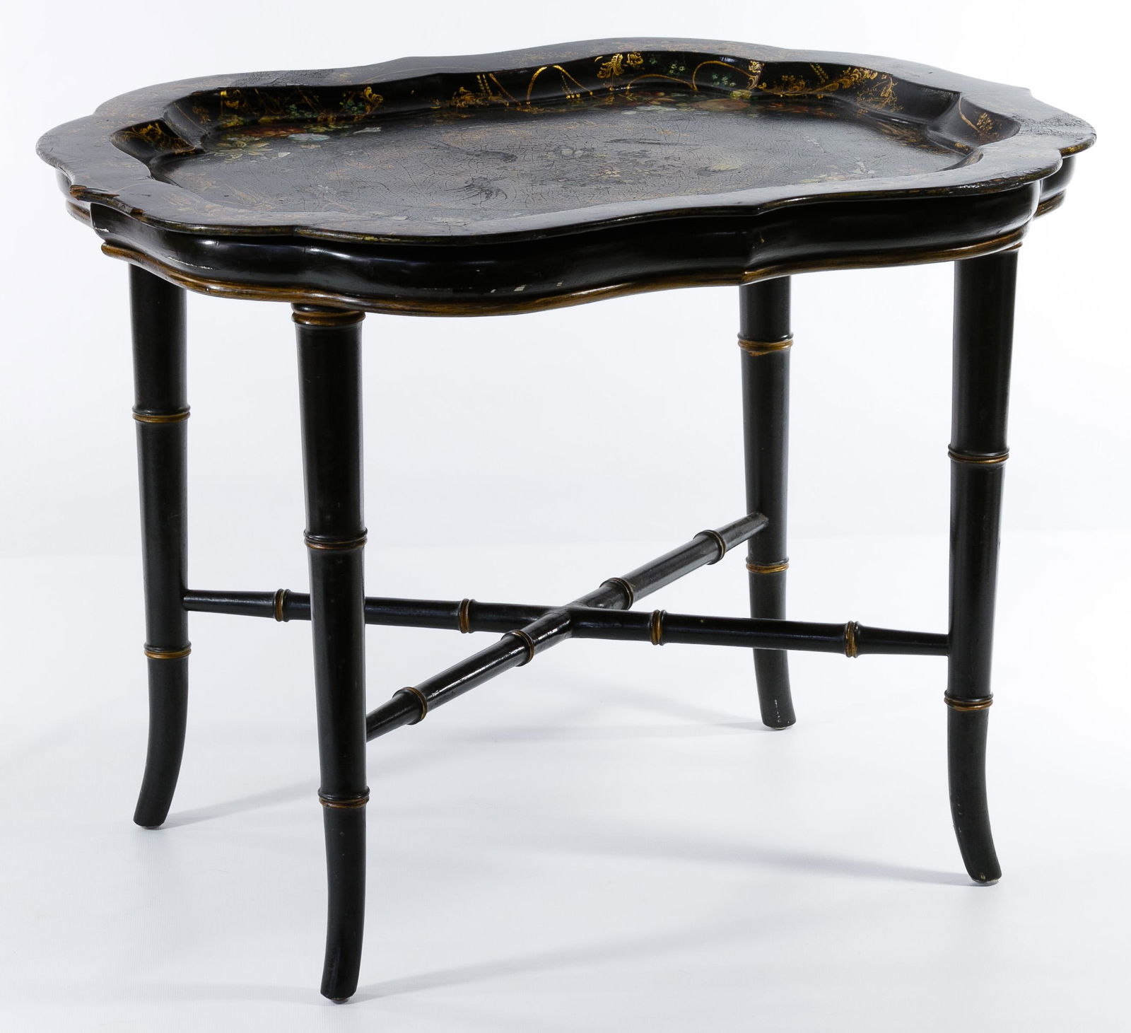 (4) ENGLISH REGENCY STYLE BLACK LACQUER CHINOISERIE NESTING TABLES2 days LeftVictorian Style Bamboo Chinoiserie Side TableFeb 26, 2026Chinoiserie Black and Gold Faux Bamboo Tray Table2 days LeftVictorian Papier-Mache Tray Table with Hand-Painted Floral DecorationFeb 27, 2026VICTORIAN BLACK LACQUERED PAPIER MACHE TRAY ON STAND3 days LeftEarly 20th Century Rosewood Stand With Mother of Pearl Inset and Rouge Marble TopFeb 27, 2026ENGLISH REGENCY PARCEL-GILT JAPANNED CENTER / PEDESTAL TABLE2 days LeftChinoiserie Papier Mache Oval Tray TableMay 07, 2026Victorian Gilt-Decorated Papier-Mache Tray6 days LeftA SHERATON PERIOD LACQUERED AND PAINTED OCCASIONAL TABLE, 18TH CENTURYA BLACK AND GILT CHINOISERIE LAQUERED CENTER TABLE, THE TOP POSSIBLY 18TH CENTURY, THE STAND LATERLouis XV Boulle Inlaid Table with Bronze MountsMar 07, 2026Louis XV Style Giltwood Console Table with Black Marble TopMar 07, 2026LOUIS XVI STYLE MARBLE TOP OCCASIONAL TABLEMar 07, 2026A French eglomise decorated gueridon circa 18701 day LeftItalian Ormolu Side Table With Floral Marquetry Motif