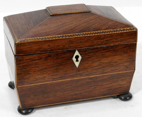 A Regency Gilt-Metal Mounted Leather Sewing CasketEARLY 19TH C. TEA CADDY WITH CONCH SHELL INLAYFeb 21, 2026George III Inlaid Mahogany Tea Caddy5 days LeftGEORGE III INLAID SATINWOOD OCTAGONAL TEA CADDYFeb 21, 2026MARQUETRY INLAID TEA CADDYFeb 21, 202619TH C. ENGLISH CHIPPENDALE THREE-BAY TEA BOXFeb 21, 2026Victorian mother of pearl inlay tea caddyFeb 20, 2026George III Mahogany Shell Marquetry Tea CaddyMar 12, 2026Regency Mahogany Cellarette, c. 1820Feb 25, 2026Mahogany Lift Top Jewelry Box with Various Interior Compartments, 19th CenturyFeb 28, 2026George III Inlaid Burlwood Tea CaddyFeb 19, 2026ENGLISH INLAID SATINWOOD TEA CADDYFeb 21, 202619TH C. TUNBRIDGE WARE JEWELRY BOXFeb 20, 2026Marquetry Inlaid Mahogany with Inlays Tea Caddy, Ca. 20th Cent., H 5.25" W 10" Depth 6"Feb 19, 2026ENGLISH INLAID SATINWOOD TEA CADDYFeb 21, 2026A George III satinwood, banded and mahogany inlaid tea caddy