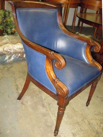 Regency Style Blue Leather Chair