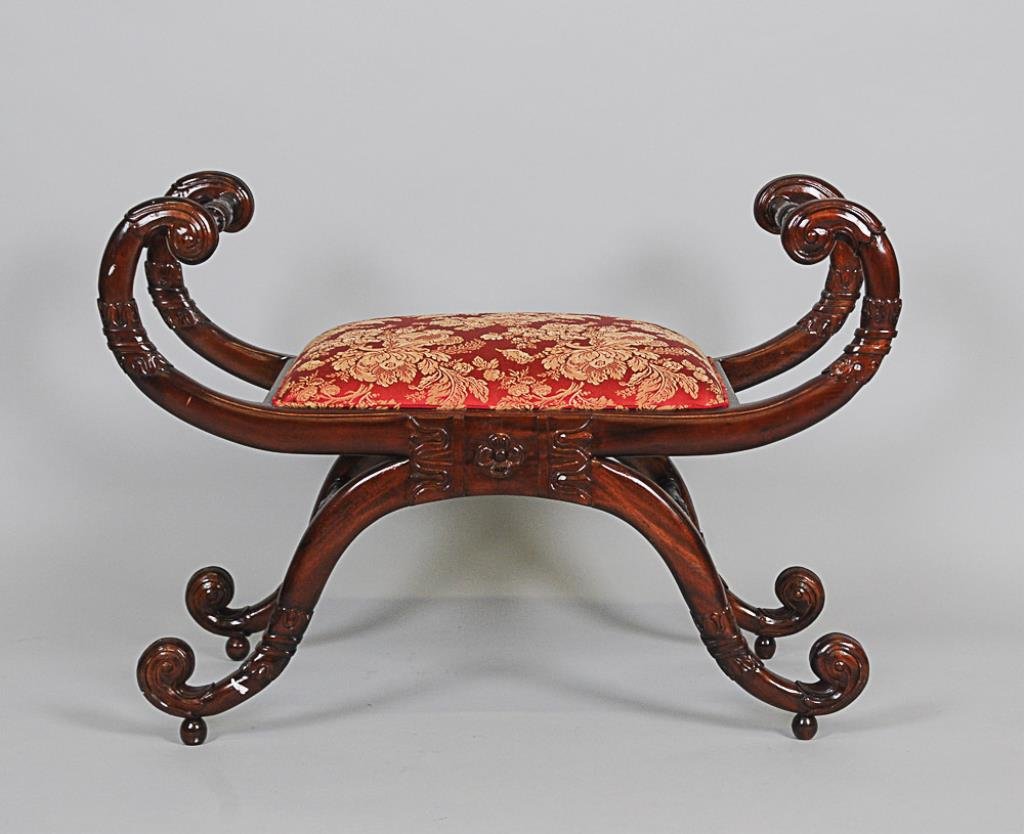 Regency Style Curule-Form Mahogany Bench