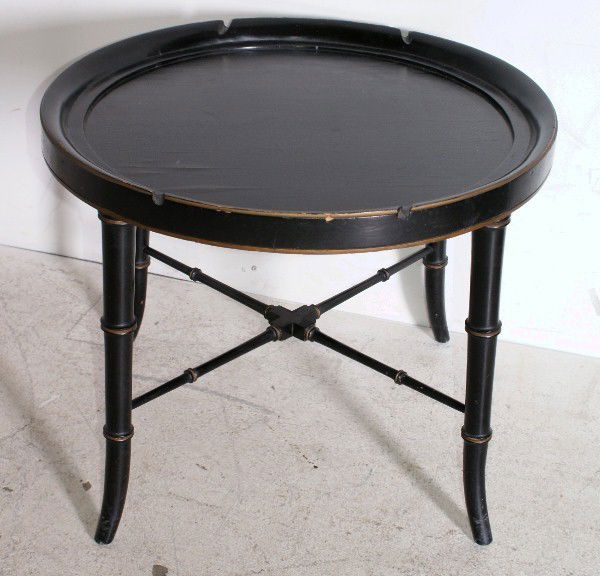 Regency style ebonized and parcel gilt table. H: 19