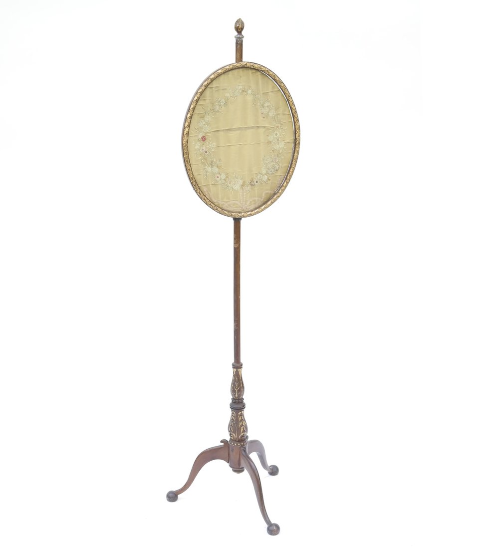 Brass & Marble Empire Iron Marble Floor Lamp w/ Beaded Shade19th Century American Pie Crust Table, Tilt Top, Solid Wood Carved.Chinoiserie Pagoda Motif Floor Lamp England 1900s Carved Polychromed6 days LeftA Wood-Sculptured Fire Screen with Floral Embroidery, Louis XV style, 19th C.2 days LeftEnglish Queen Anne Mahogany Tilt Top Tea Table2 days LeftAntique Giltwood Oval Frame With Convex Glass, 19th-20th CenturyFeb 15, 2026NY Chippendale Carved Mahogany Fire ScreenFeb 17, 2026George III Style Mahogany Tripod TableFeb 12, 2026CHIPPENDALE MAHOGANY TILT-TOP TABLE 18th Century Height 27". Top diameter 27".Feb 18, 2026French Inlaid Portico Empire Style Mantle Clock, 19th CenturyFeb 15, 2026Federal Mahogany & Giltwood Inlaid Mirror, New York 1790-18105 days LeftGeorge III Giltwood Girandole Beveled MirrorMar 19, 2026Early American Tiger Maple Needlepoint Fire Screen on StandMar 07, 2026Vintage Regency Bookmatched Tilt Top Table with Pedestal Base5 days LeftElegant Vintage Regency Gilt Lantern with Textured Glass Panels6 days LeftAntique Victorian "Gone With the Wind" Floor Lamp5 days Left