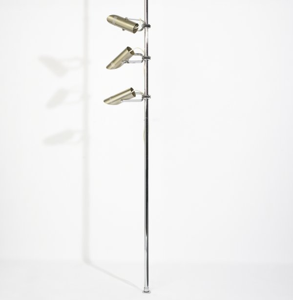 SoldGerald Thurston for Lightolier "Lytespan" Tension Pole LampGerald Thurston Lytespan adjustable tension pole lamp, Lightolier Circa 1960s Steel, brass, enameled metal, molded plastic 99" x 29" x 17" Marked LIGHTOLIER iSee Sold Price