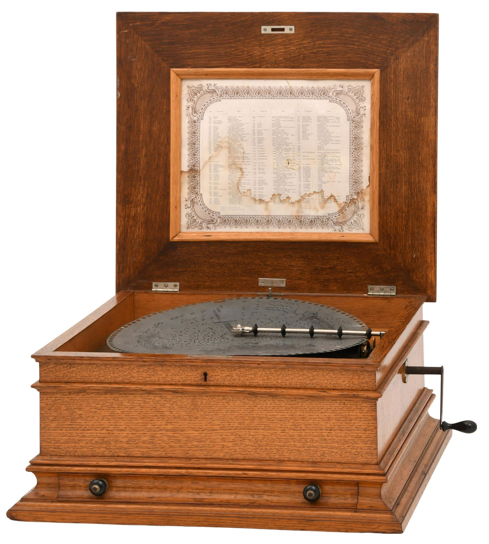 Swiss Music BoxFeb 26, 2026German Disc Music Box Marked Schute-Marke, Serial #230253Mar 21, 2026Antique Regina 15-1/2" Double Comb Disc PlayerFeb 28, 2026Rare Disc music box Regina 8 inch Wooden Includes 3 Original Discs7 days LeftPorter Baroque music box, inlaid, veneer, plays 15.5 inch metal discs, 14 discs, has amazing sound,Feb 24, 2026Victor II Rear Mount Humpback Model PhonographFeb 28, 2026Late 19th Century Regina Mahogany Crank Music Box With DiscsMar 03, 2026Circa 1906 Edison Standard Cylinder Phonograph Model BFeb 28, 2026ART NOUVEAU PHONOGRAPH, THE GRAMOPHONE CO., ENGLANDFeb 22, 2026Edison Amberola Cylinder Phonograph Model 30Feb 28, 2026An Edison phonograph Circa early 20th centuryVintage Birch Model 30 Hand Crank PhonographMar 07, 2026RCA VICTOR GRAMAPHONE -REPLICA NO RESERVE!6 days Left2 Music Boxes, Symphonian Disc Player and French Cylinder Music BoxMar 04, 2026U.S. Naval Observatory Ball Recording Sextant6 days LeftAntique Swiss Cylinder Music BoxFeb 28, 2026