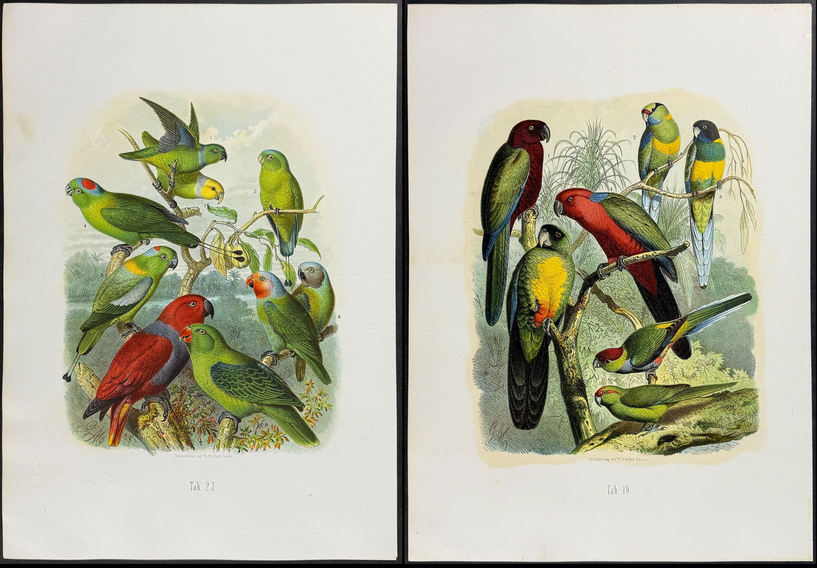 Reichenow - 4 Parrot Lithographs