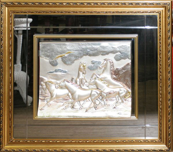 RELIEF "WILD HORSE" PLAQUE, MIRRORED BORDER,