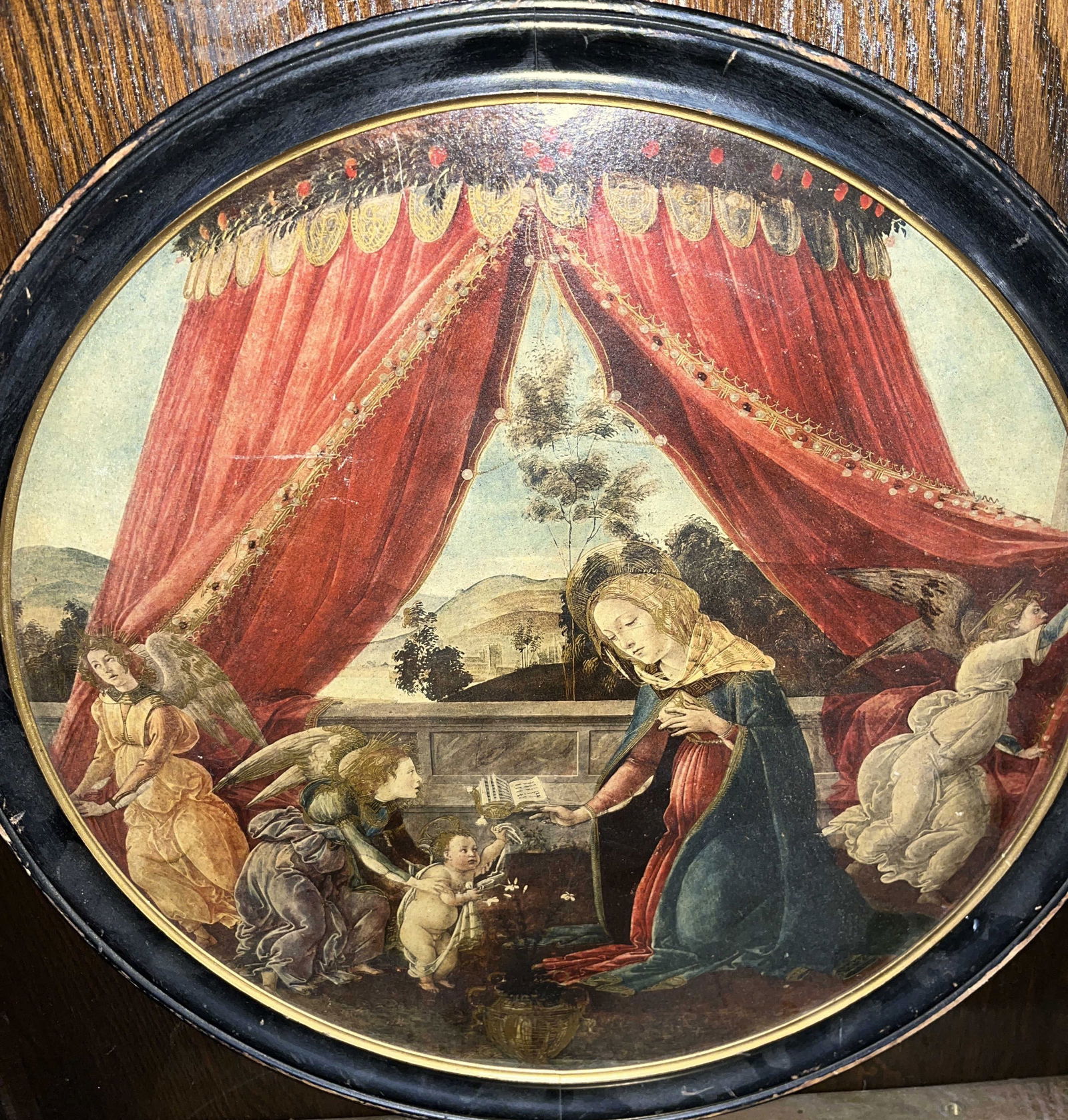 Religious Art on Board w/ Circular Frame