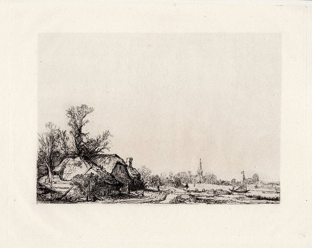 Rembrandt Landscape with a cottage etching