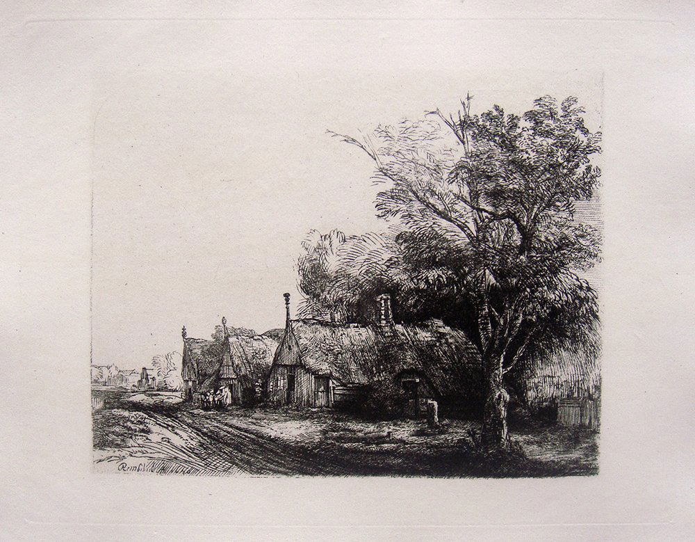 Rembrandt Landscape with Three Cottages