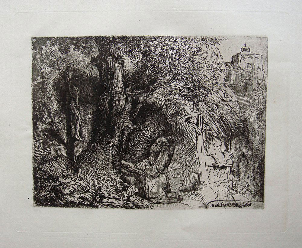 Rembrandt St Francis beneath a Tree etching