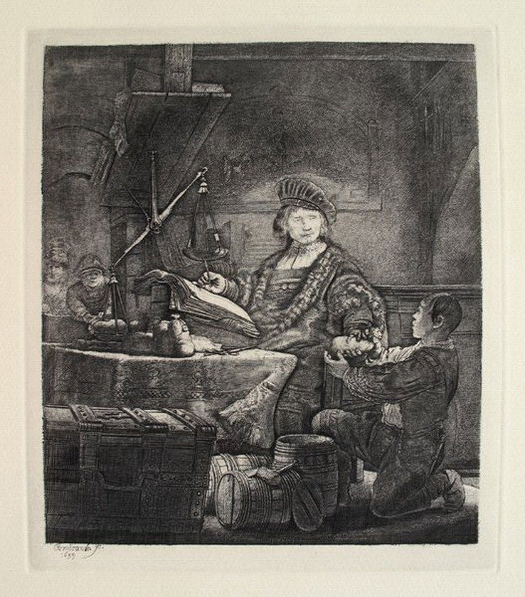 REMBRANDT THE GOLDWEIGHER ETCHING